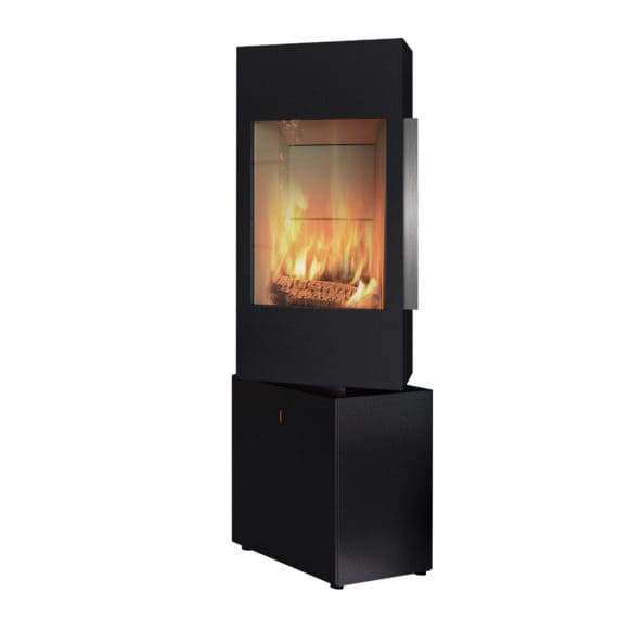 Particularité : design cubique, habillages acier ou pierre naturelle, accumulation possible